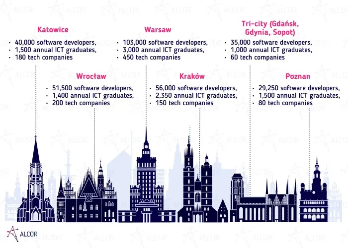 Poland boasts a substantial and growing IT talent pool, with over 300,000 IT professionals and about 15,000 new graduates entering the market annually. The country is home to several top-tier technical universities, such as the Warsaw University of Technology and AGH University of Science and Technology, which produce highly skilled graduates in various IT disciplines.