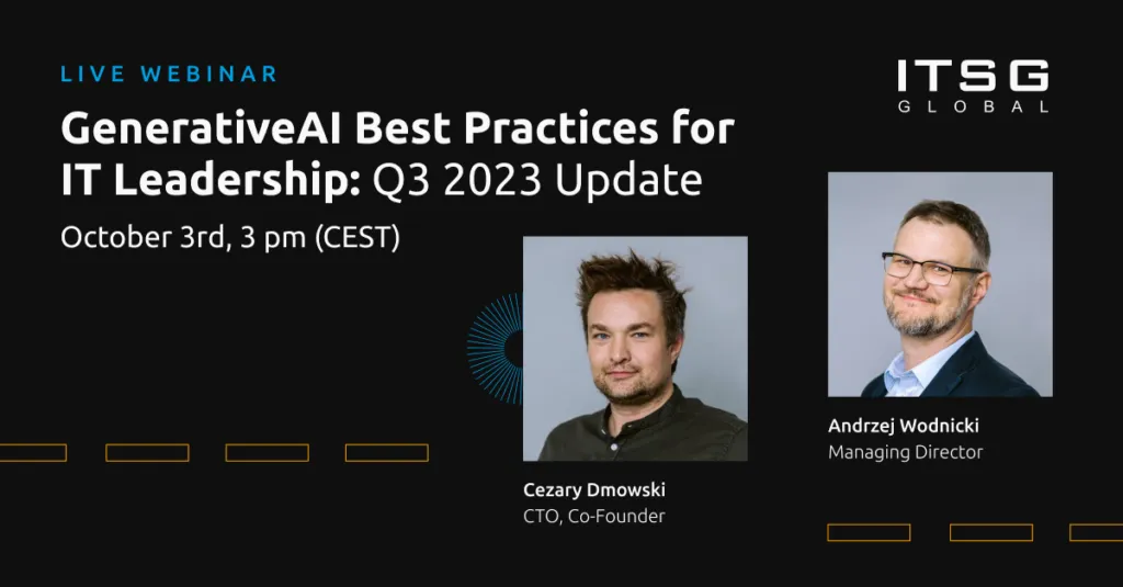 To learn more join us on Tuesday, October 3rd 2023 at 3 pm (CEST) for a brand new webinar: GenerativeAI Best Practices for IT Leadership: Q3 2023 Update. Register here: