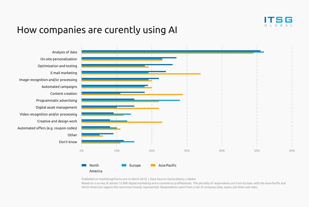 It also seems like North America will dominate the AI landscape, since US-based companies invested approx. $8 billion between the years 2020 and 2022 in AI, which also makes 75% of all investments done in that period.