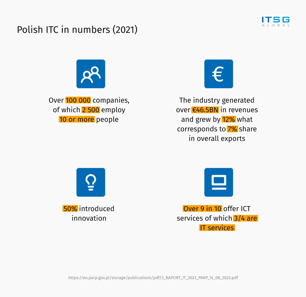 A strong position of the Polish ICT sector has already been established not only in the EU, but also overseas. The worth of Polish telecommunication and IT equipment exports in 2021 reached EUR 11.8 billion. The feedback remains positive which brings us back to the case study from the beginning of this text - Polish programmers prove themselves and the quality doesn’t disappoint.